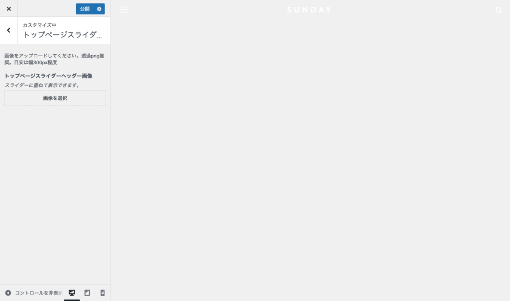 - スライダーの上にのせる画像:「トップページヘッダー画像」から