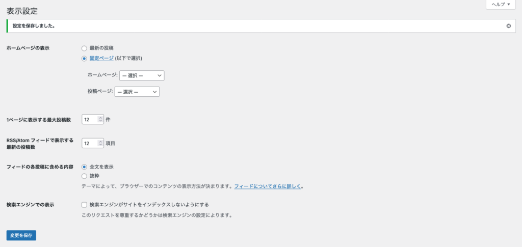 投稿が一覧で表示されるページの、記事表示件数の設定をします。